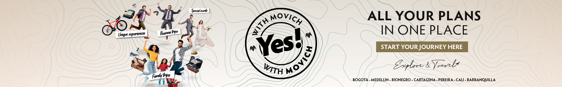 We offer a complete transportation service for your trip. Request transportation from your hotel to Rafael Núñez Airport and from the airport to your hotel. Schedule your transportation service with us for an additional fee, and we guarantee you will enjoy the Movich experience at all times.